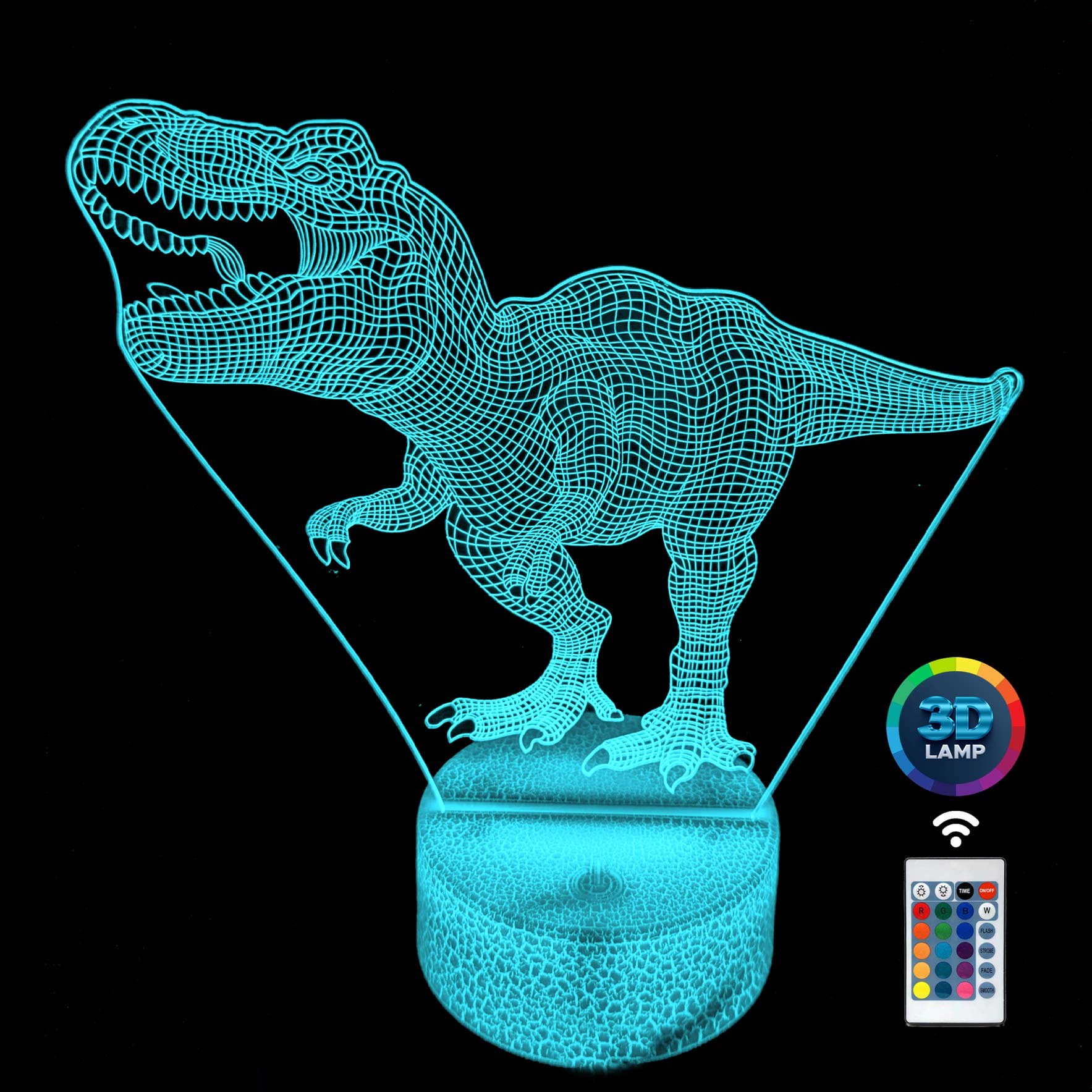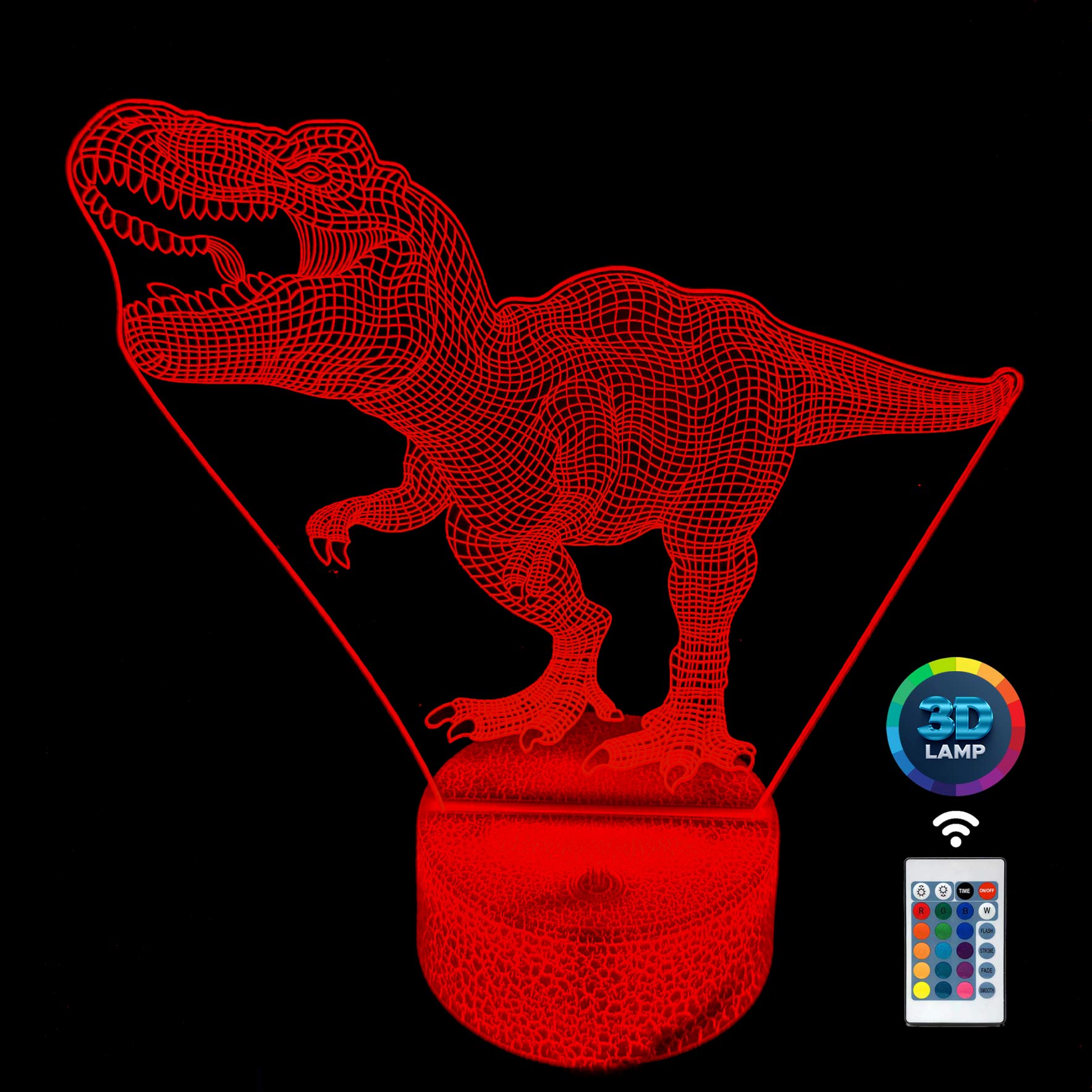 Lampka nocna 3D LAMP LED świeci w 16 kolorach (obsługa pilotem), 7 kolorach przy użyciu guzika na bazie (jest to lampka najnowszej generacji). Lampka LED może świecić w jednym stałym, wybranym kolorze (zależnie od Twojego wyboru) lub w trybie zmiennym (zmieniające się odcienie delikatnie lub pulsująco). Lampka się nie nagrzewa, istnieje możlwość ustawienia natężenia oświetlenia (rozjaśnianie i przyciemnianie – pierwsze dwa guziki po lewej na pilocie).