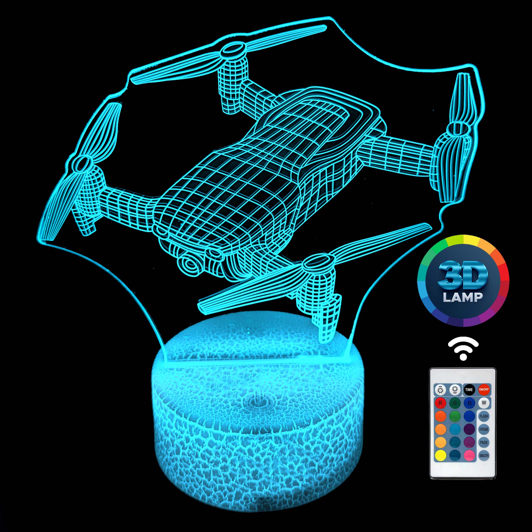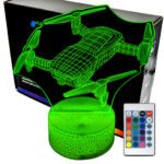 Lampka nocna 3D LAMP LED świeci w 16 kolorach (obsługa pilotem), 7 kolorach przy użyciu guzika na bazie (jest to lampka najnowszej generacji). Lampka LED może świecić w jednym stałym, wybranym kolorze (zależnie od Twojego wyboru) lub w trybie zmiennym (zmieniające się odcienie delikatnie lub pulsująco). Lampka się nie nagrzewa, istnieje możlwość ustawienia natężenia oświetlenia (rozjaśnianie i przyciemnianie – pierwsze dwa guziki po lewej na pilocie).