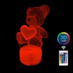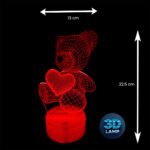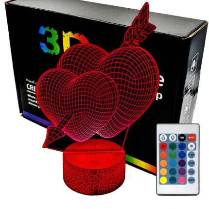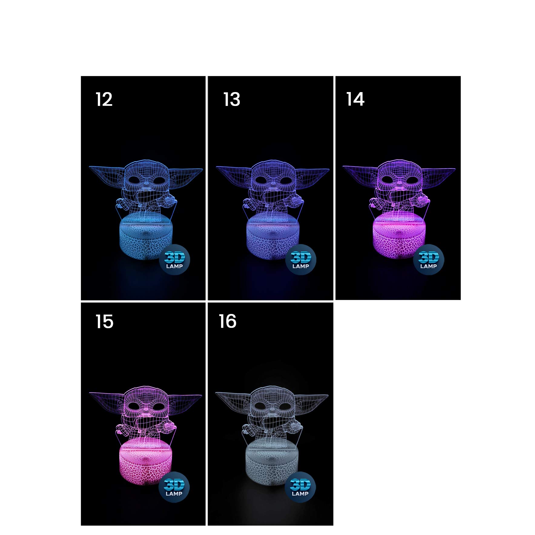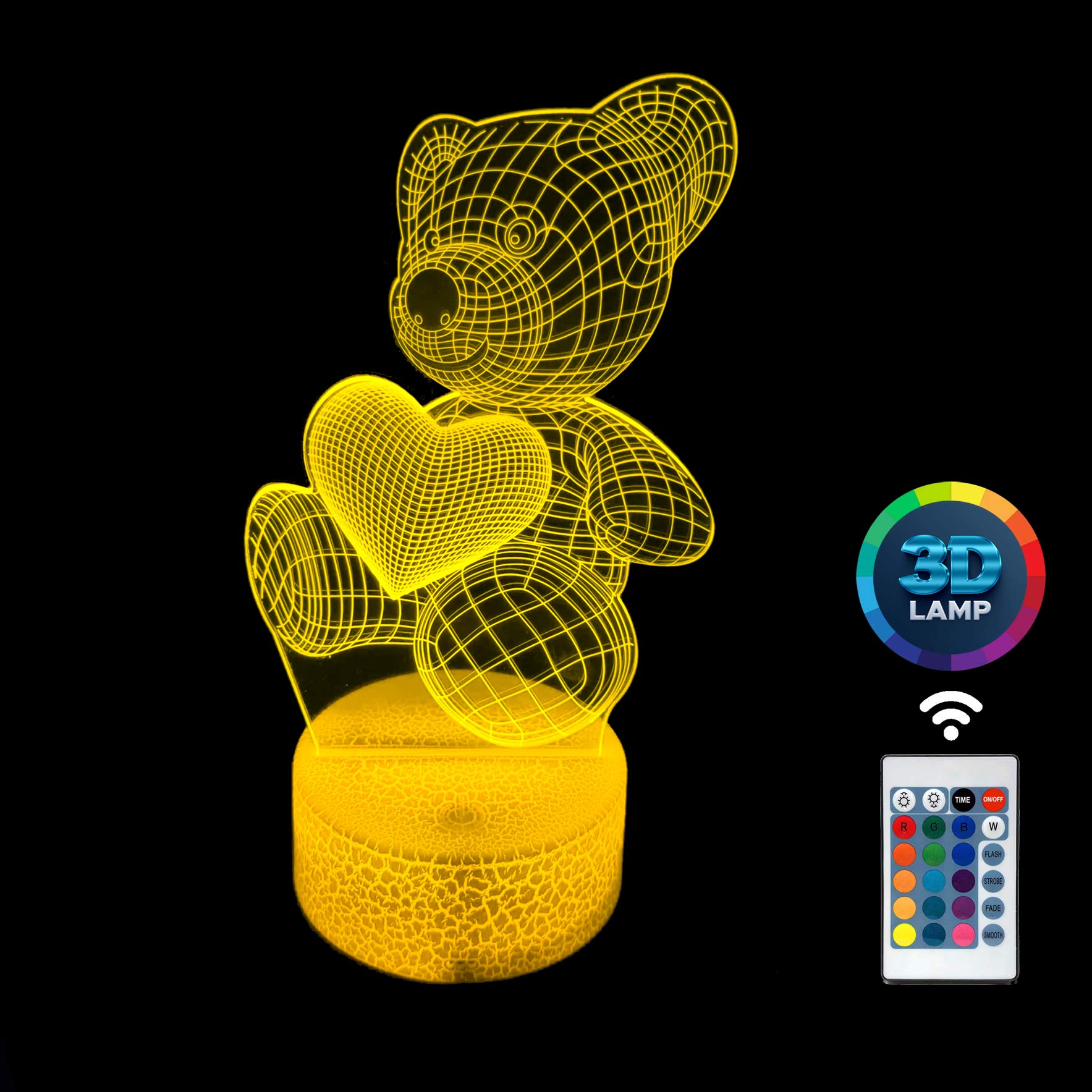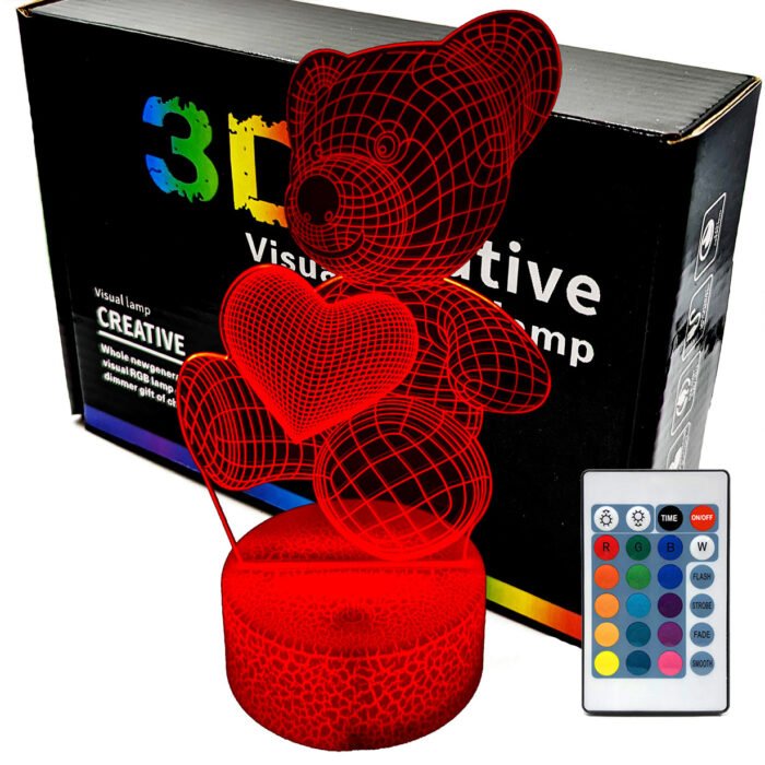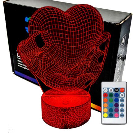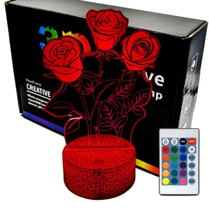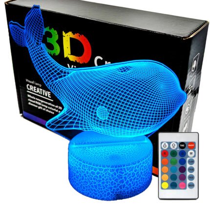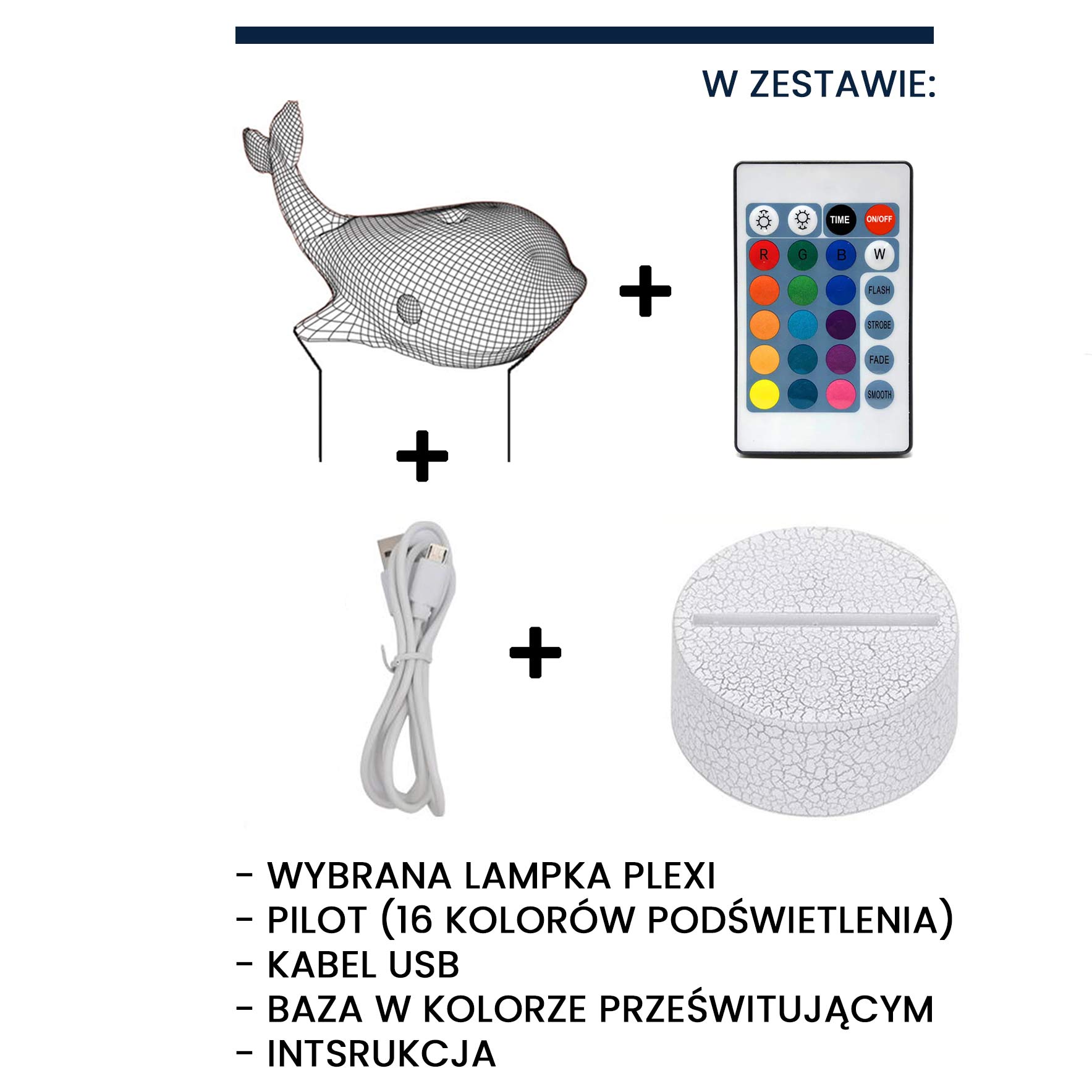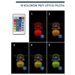 Lampka nocna 3D LAMP LED świeci w 16 kolorach (obsługa pilotem), 7 kolorach przy użyciu guzika na bazie (jest to lampka najnowszej generacji). Lampka LED może świecić w jednym stałym, wybranym kolorze (zależnie od Twojego wyboru) lub w trybie zmiennym (zmieniające się odcienie delikatnie lub pulsująco). Lampka się nie nagrzewa, istnieje możlwość ustawienia natężenia oświetlenia (rozjaśnianie i przyciemnianie – pierwsze dwa guziki po lewej na pilocie).