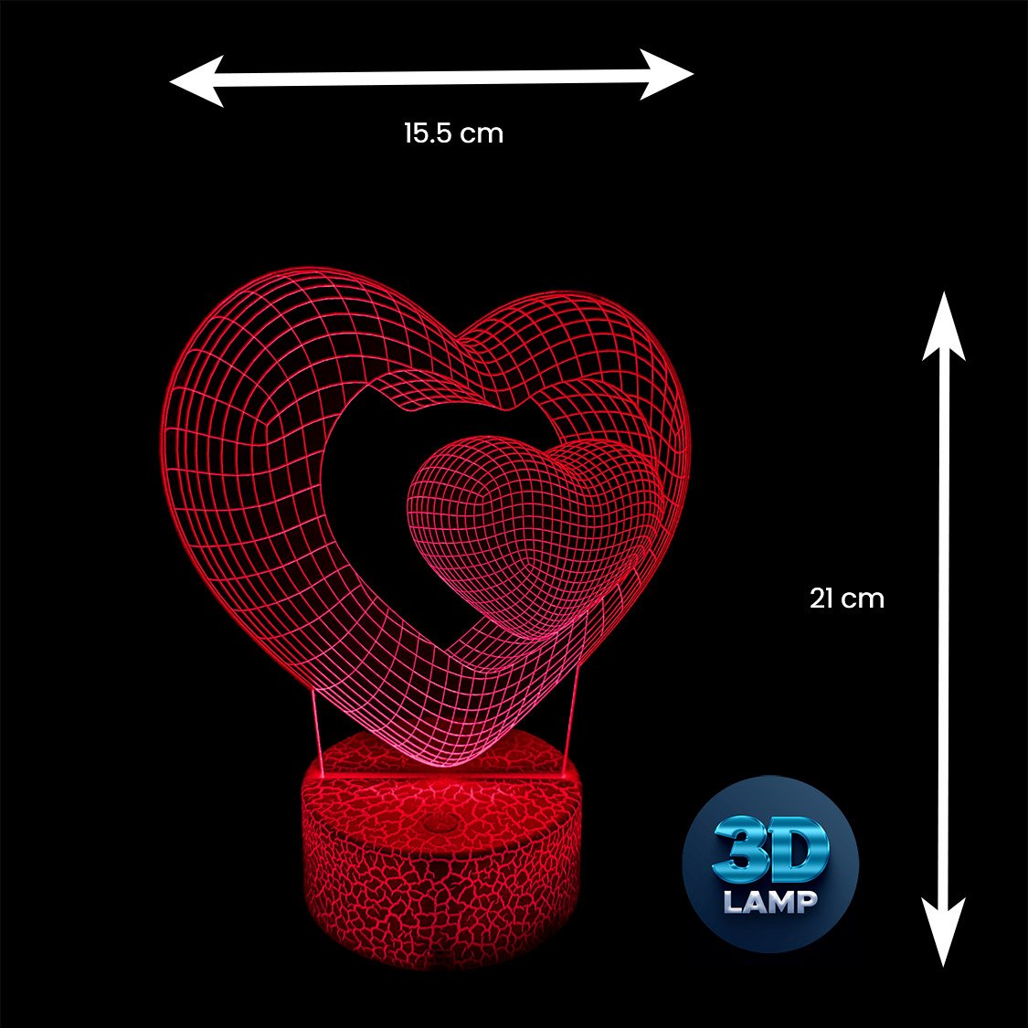 Na rynku dostępne są dwa rodzaje szerokości baz lampek: 8.5 cm i 9.5 cm. Wszystkie lampki marki 3D LAMP są lampkami większymi, wielkości 9.5cm. Dokładny wymiar tej lamki podany jest w sekcji INFORMACJE DODATKOWE.