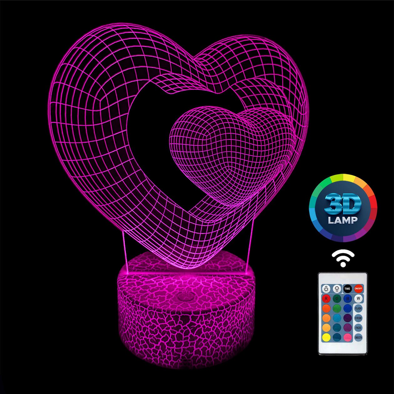 Lampka nocna 2 serca iluzja 3D LAMP LED