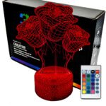 Lampka nocna 3D LAMP LED świeci w 16 kolorach (obsługa pilotem), 7 kolorach przy użyciu guzika na bazie (jest to lampka najnowszej generacji). Lampka LED może świecić w jednym stałym, wybranym kolorze (zależnie od Twojego wyboru) lub w trybie zmiennym (zmieniające się odcienie delikatnie lub pulsująco). Lampka się nie nagrzewa, istnieje możlwość ustawienia natężenia oświetlenia (rozjaśnianie i przyciemnianie – pierwsze dwa guziki po lewej na pilocie).