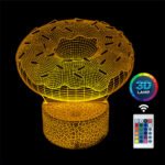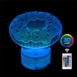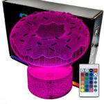 Lampka nocna 3D LAMP LED świeci w 16 kolorach (obsługa pilotem), 7 kolorach przy użyciu guzika na bazie (jest to lampka najnowszej generacji). Lampka LED może świecić w jednym stałym, wybranym kolorze (zależnie od Twojego wyboru) lub w trybie zmiennym (zmieniające się odcienie delikatnie lub pulsująco). Lampka się nie nagrzewa, istnieje możlwość ustawienia natężenia oświetlenia (rozjaśnianie i przyciemnianie – pierwsze dwa guziki po lewej na pilocie).