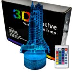 Lampka nocna 3D LAMP LED świeci w 16 kolorach (obsługa pilotem), 7 kolorach przy użyciu guzika na bazie (jest to lampka najnowszej generacji). Lampka LED może świecić w jednym stałym, wybranym kolorze (zależnie od Twojego wyboru) lub w trybie zmiennym (zmieniające się odcienie delikatnie lub pulsująco). Lampka się nie nagrzewa, istnieje możlwość ustawienia natężenia oświetlenia (rozjaśnianie i przyciemnianie – pierwsze dwa guziki po lewej na pilocie).