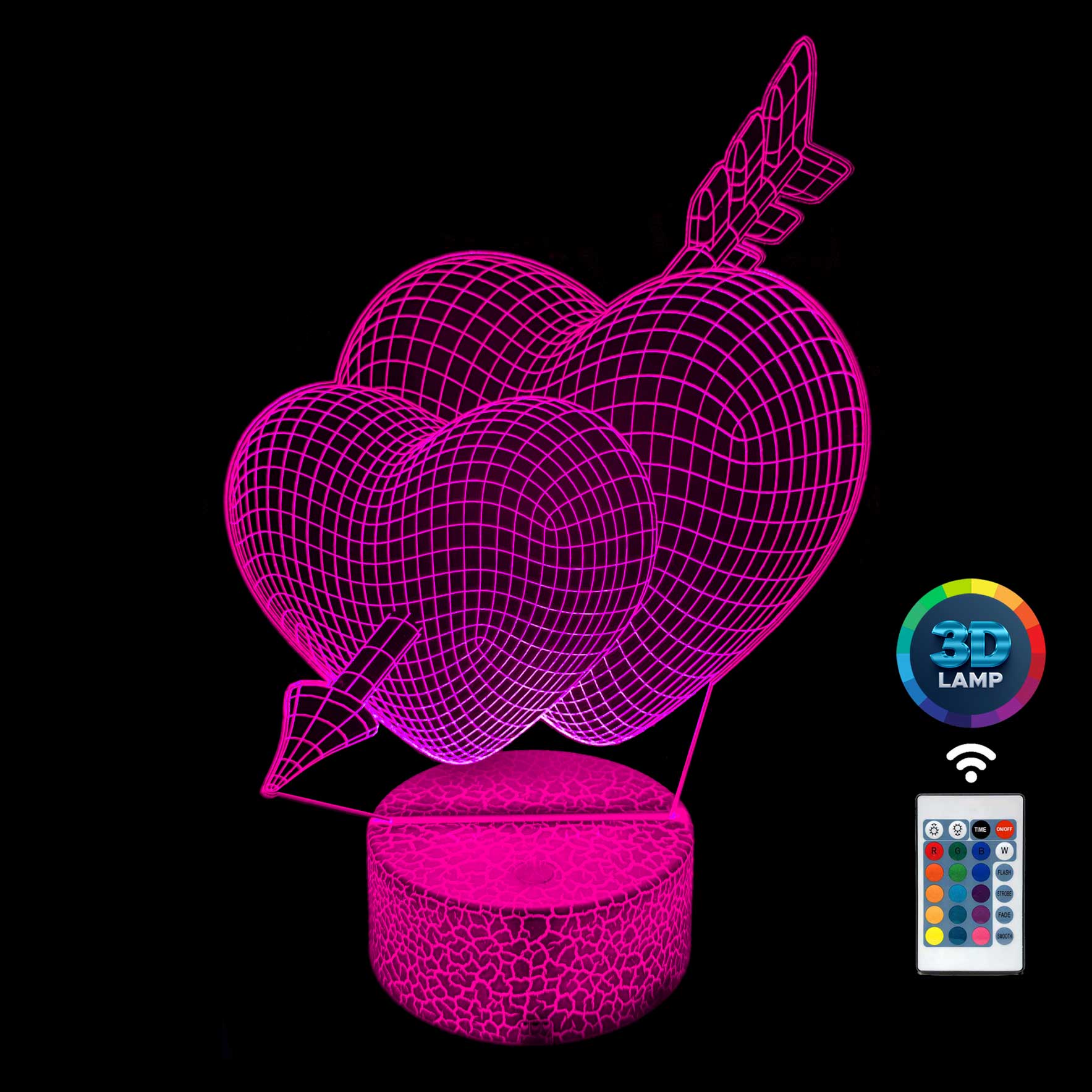 Lampka nocna serca ze strzałą 3D LAMP LED