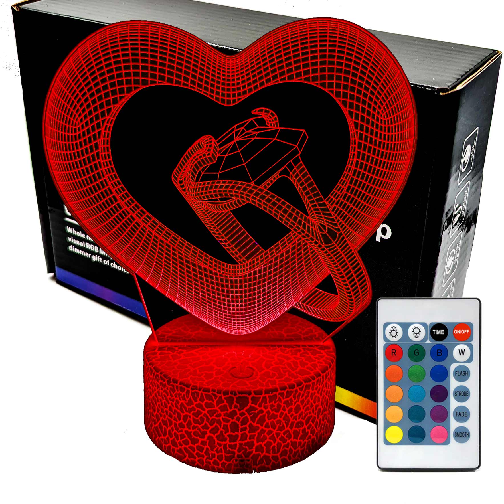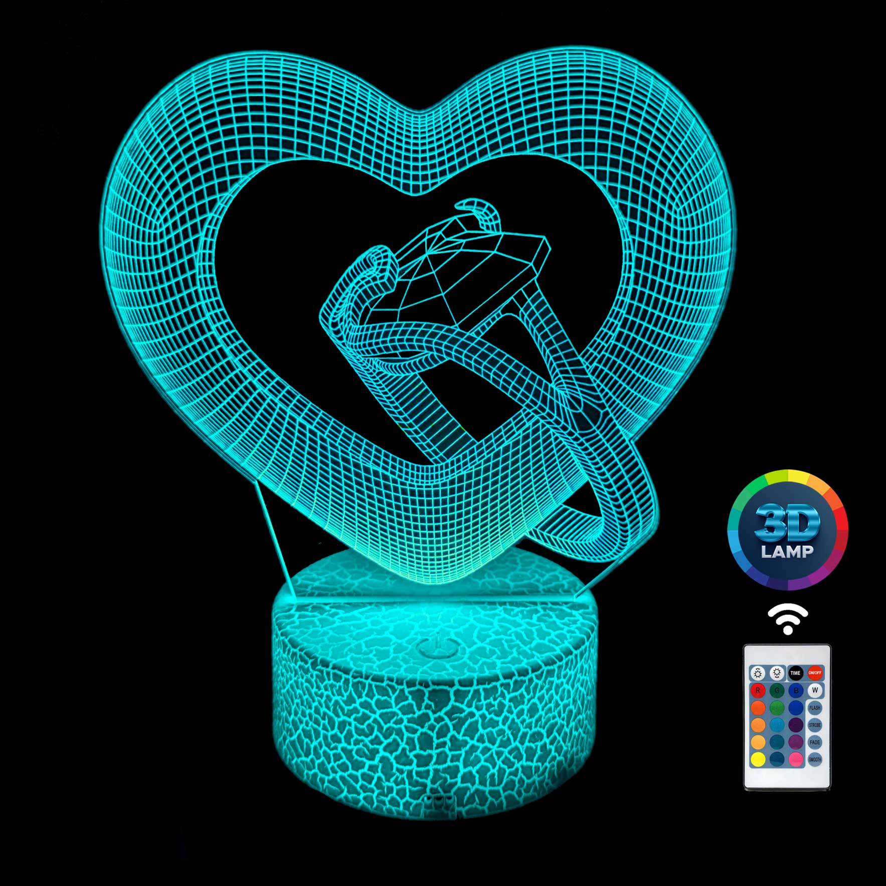Lampka nocna serce z pierścionkiem 3D LAMP LED