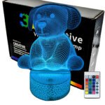 Lampka nocna 3D LAMP LED świeci w 16 kolorach (obsługa pilotem), 7 kolorach przy użyciu guzika na bazie (jest to lampka najnowszej generacji). Lampka LED może świecić w jednym stałym, wybranym kolorze (zależnie od Twojego wyboru) lub w trybie zmiennym (zmieniające się odcienie delikatnie lub pulsująco). Lampka się nie nagrzewa, istnieje możlwość ustawienia natężenia oświetlenia (rozjaśnianie i przyciemnianie – pierwsze dwa guziki po lewej na pilocie).