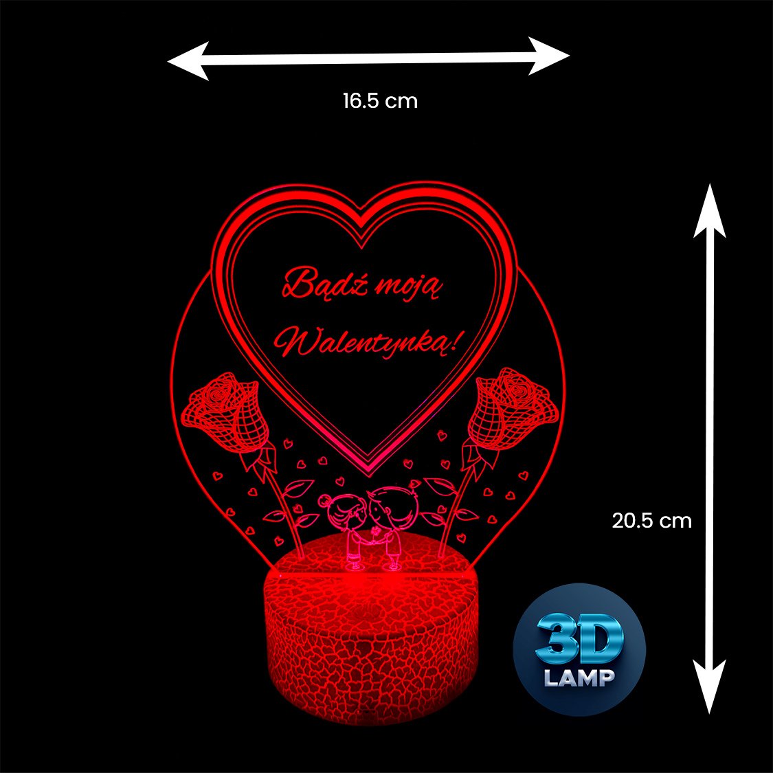 Na rynku dostępne są dwa rodzaje szerokości baz lampek: 8.5 cm i 9.5 cm. Wszystkie lampki marki 3D LAMP są lampkami większymi, wielkości 9.5cm. Dokładny wymiar tej lamki podany jest w sekcji INFORMACJE DODATKOWE.
