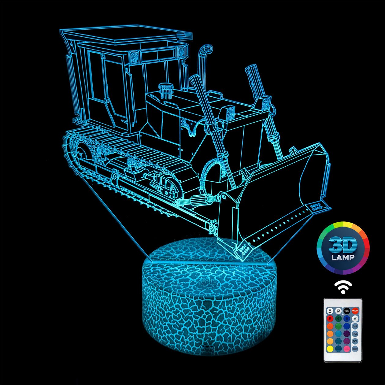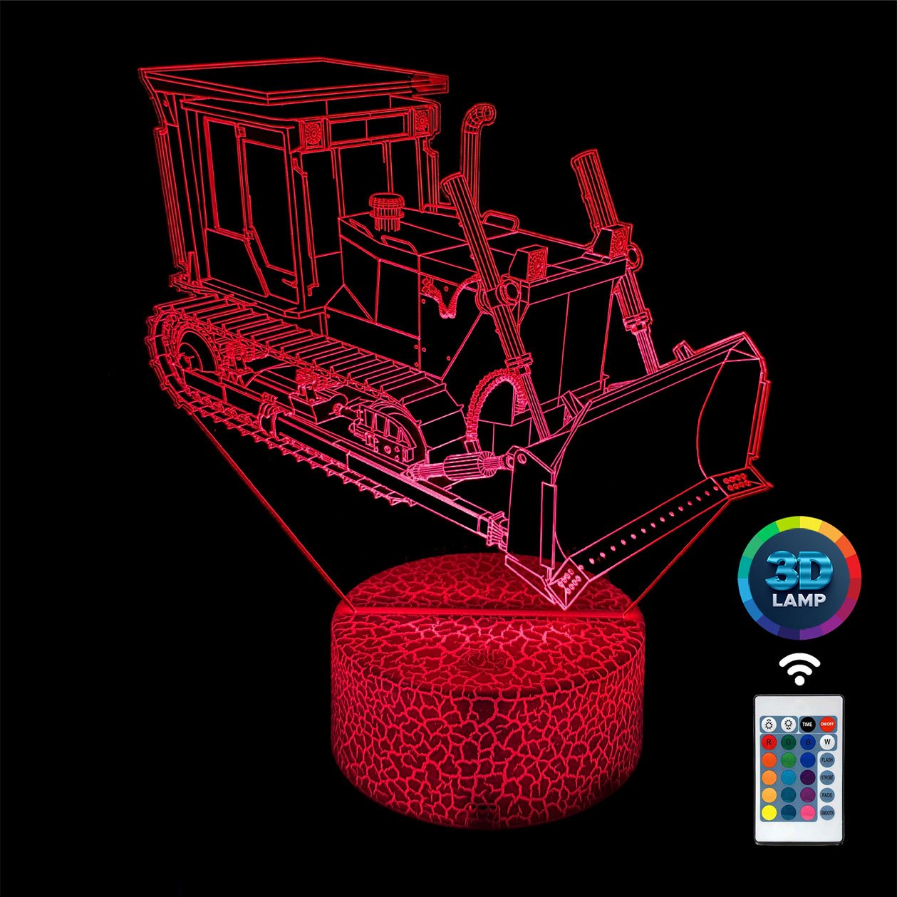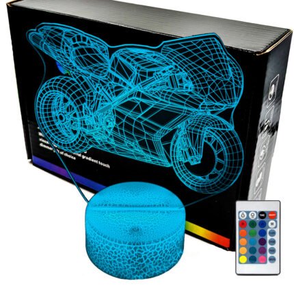 Lampka nocna 3D LAMP LED świeci w 16 kolorach (obsługa pilotem), 7 kolorach przy użyciu guzika na bazie (jest to lampka najnowszej generacji). Lampka LED może świecić w jednym stałym, wybranym kolorze (zależnie od Twojego wyboru) lub w trybie zmiennym (zmieniające się odcienie delikatnie lub pulsująco). Lampka się nie nagrzewa, istnieje możlwość ustawienia natężenia oświetlenia (rozjaśnianie i przyciemnianie – pierwsze dwa guziki po lewej na pilocie).