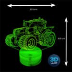 Lampka nocna 3D LAMP LED świeci w 16 kolorach (obsługa pilotem), 7 kolorach przy użyciu guzika na bazie (jest to lampka najnowszej generacji). Lampka LED może świecić w jednym stałym, wybranym kolorze (zależnie od Twojego wyboru) lub w trybie zmiennym (zmieniające się odcienie delikatnie lub pulsująco). Lampka się nie nagrzewa, istnieje możlwość ustawienia natężenia oświetlenia (rozjaśnianie i przyciemnianie – pierwsze dwa guziki po lewej na pilocie).